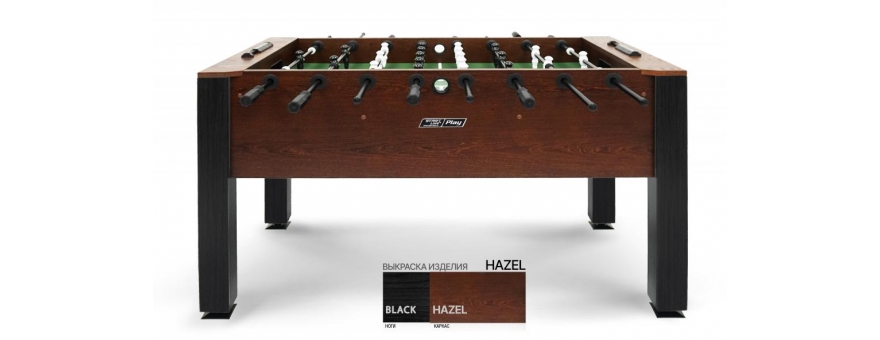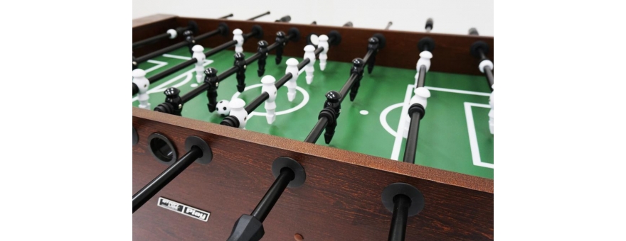 Стол оборудован профессиональными штангами и стилизованными фигурками игроков, выполненными из долговечных и прочных материалов. Ключевым преимуществом модели является материал - стол изготовлен из натурального массива древесины с применением шпона ценных пород.