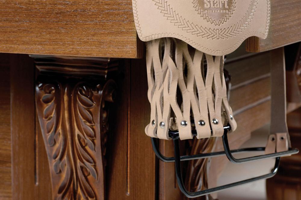 Современные технологии производства профессиональных столов, используемые в конструкции этой модели, органично вписываются в аристократичный классический дизайн с подчеркнуто строгими линиями. Лафет из деревянного массива сосны, покрытый шпоном ясеня или дуба, склеен из специальных брусков. Такая технология позволяет добиться идеальной жесткости – стол прослужит долгие годы в отличном состоянии. Резиновые амортизаторы бортов Start Super Pro рекомендованы ФБСР.