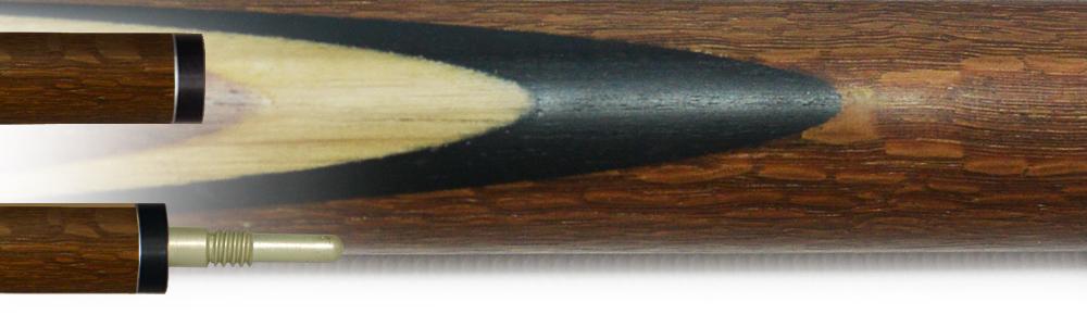 В двусоставных киях установлены специальные замки из прочного полимерного материала – собственная разработка Фабрики. Соединяя турняк и шафт, эта деталь обеспечивает идеальную скрутку, а также участвует в процессе замедления энергии, гася колебания, идущие в тыльную часть турняка, где уже находится груз. Использование цельного лепестка без склейки в построении кия обеспечивает стабильность, прочность, устойчивость изделия к искривлению.